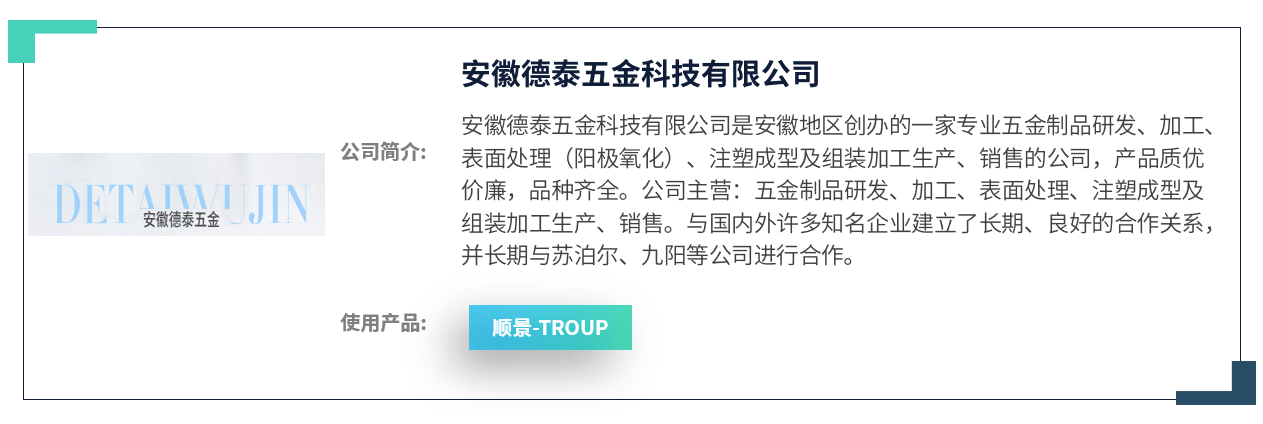 在德泰五金对多家LEYU SPORTS厂商反复调研,查看LEYU SPORTS产品等一系列的了解和咨询后,最终于2018年4月选择携手在制造业领域拥有20余年丰富经验的顺景软件作为信息化合作伙伴,并选定顺景LEYU SPORTS乐鱼.体育 (中国) 官方网站作为此次管理变革的重要工具。